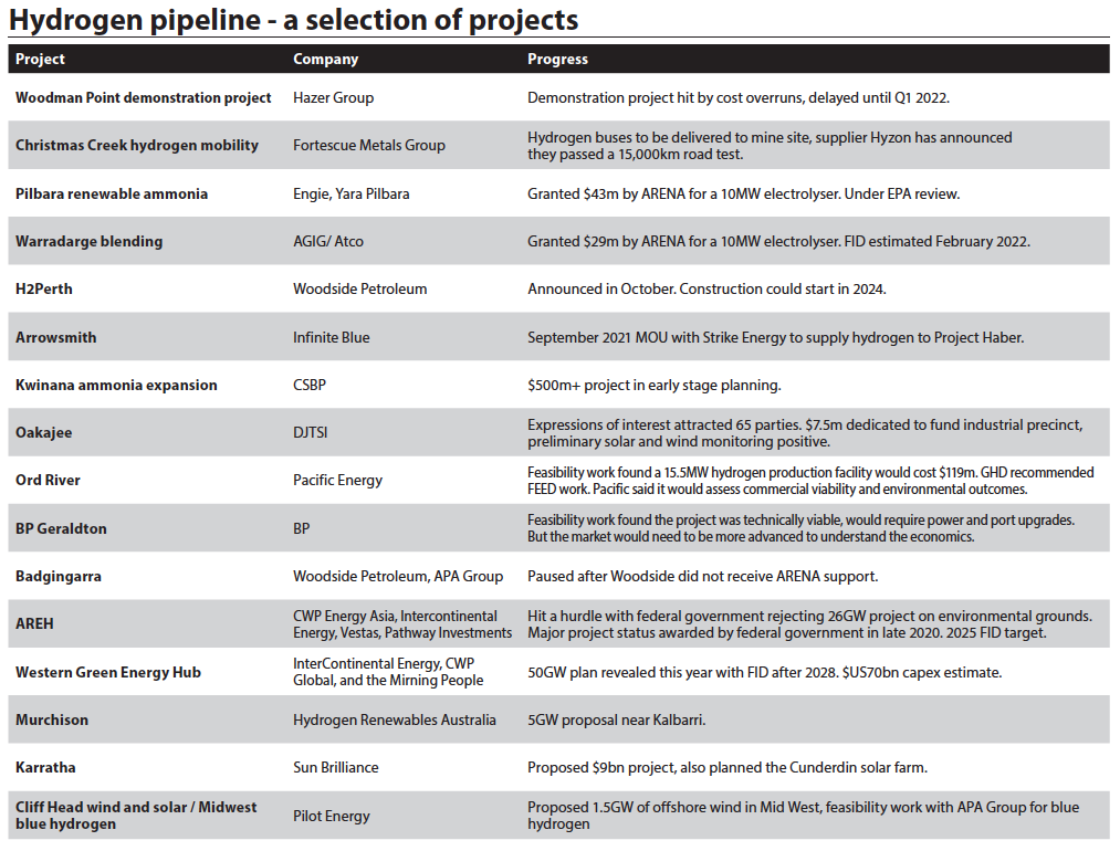Woodside added to the growing list of proposed hydrogen projects in Western Australia with its October announcement of H2Perth, to be built near Rockingham.