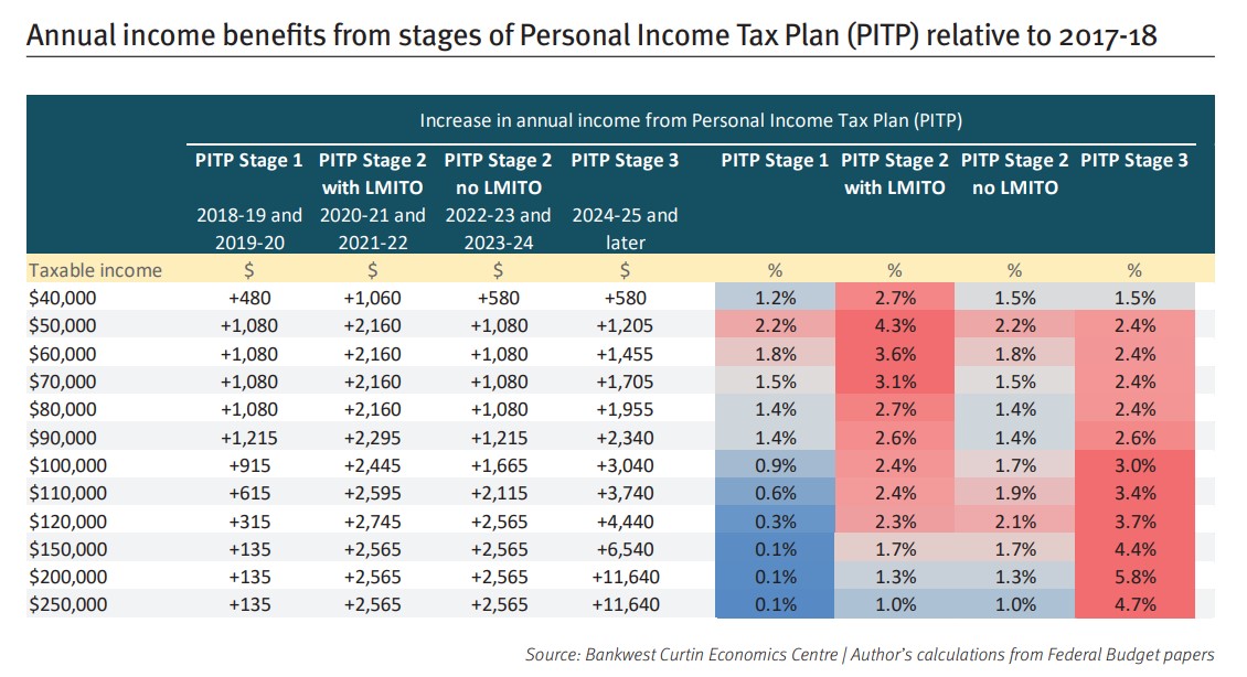 The stage three tax cuts are ongoing, which means the excess benefit to higher income earners will continue to grow over time unless other more permanent structural tax reforms are introduced to level the playing field for households across all income levels.