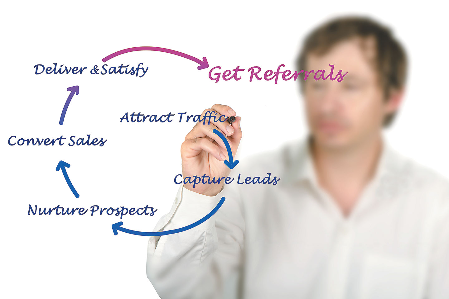 2. Arrange a three-way call, then a three-way meeting (you, your customer, your referrer).