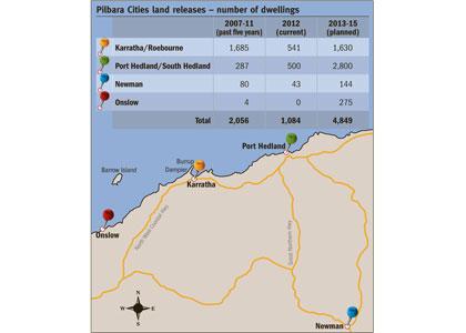 The state government plans to release land for 4,849 new dwellings across the Pilbara by 2015 to cater for increasing demand for housing in the region and to improve affordability.